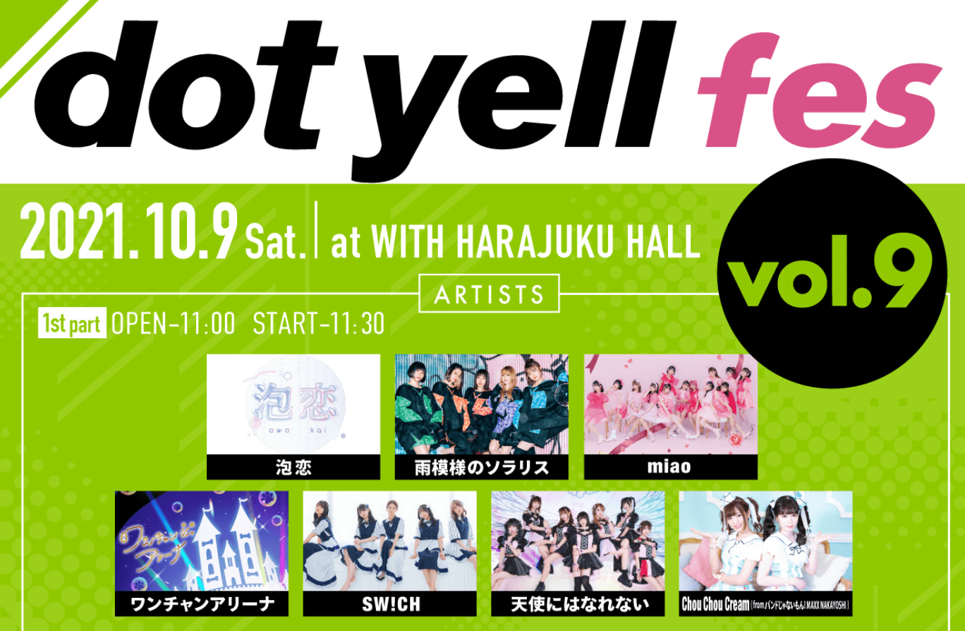 大型アイドル対バンイベント『dot yell fes vol.9』10月9日(土)@WITH HARAJUKU HALLにて開催決定!