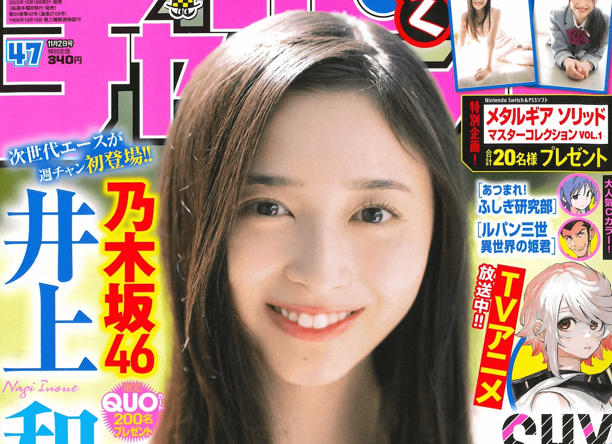 10月19日発売「週刊少年チャンピオン」47号の表紙&巻頭グラビアは、乃木坂46の井上和♡両面BIGポスターが付録としてつくほか、限定QUOカード200名プレゼント企画も!
