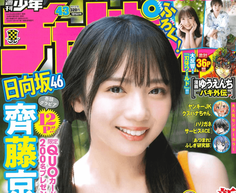 現在発売中!「週刊少年チャンピオン」43号の表紙&巻頭撮り下ろしグラビアは日向坂46・齊藤京子♡限定QUOカードプレゼント企画も実施!