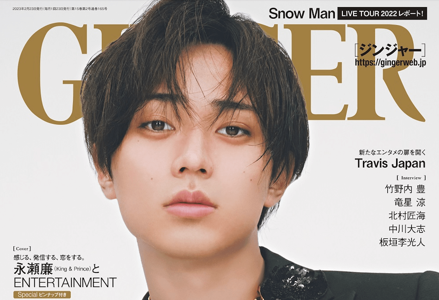 顔面国宝・King & Prince 永瀬廉が”素肌に黒ジャケット”に”煌めくつや肌デコルテ”披露に息をのむ人続出!エンタテインメントの今がすべてわかる1冊に♡