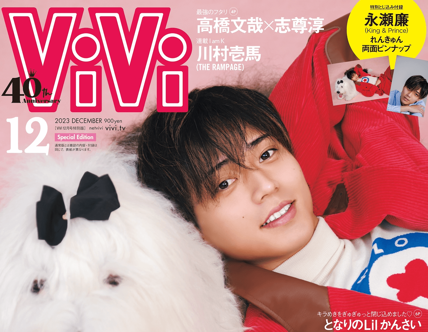 King & Prince・永瀬廉がViVi12月号特別版表紙に登場!異例となる犬とのツーショット表紙が採用♡カバーストーリー「れんれんの7不思議」でナゾに迫る。