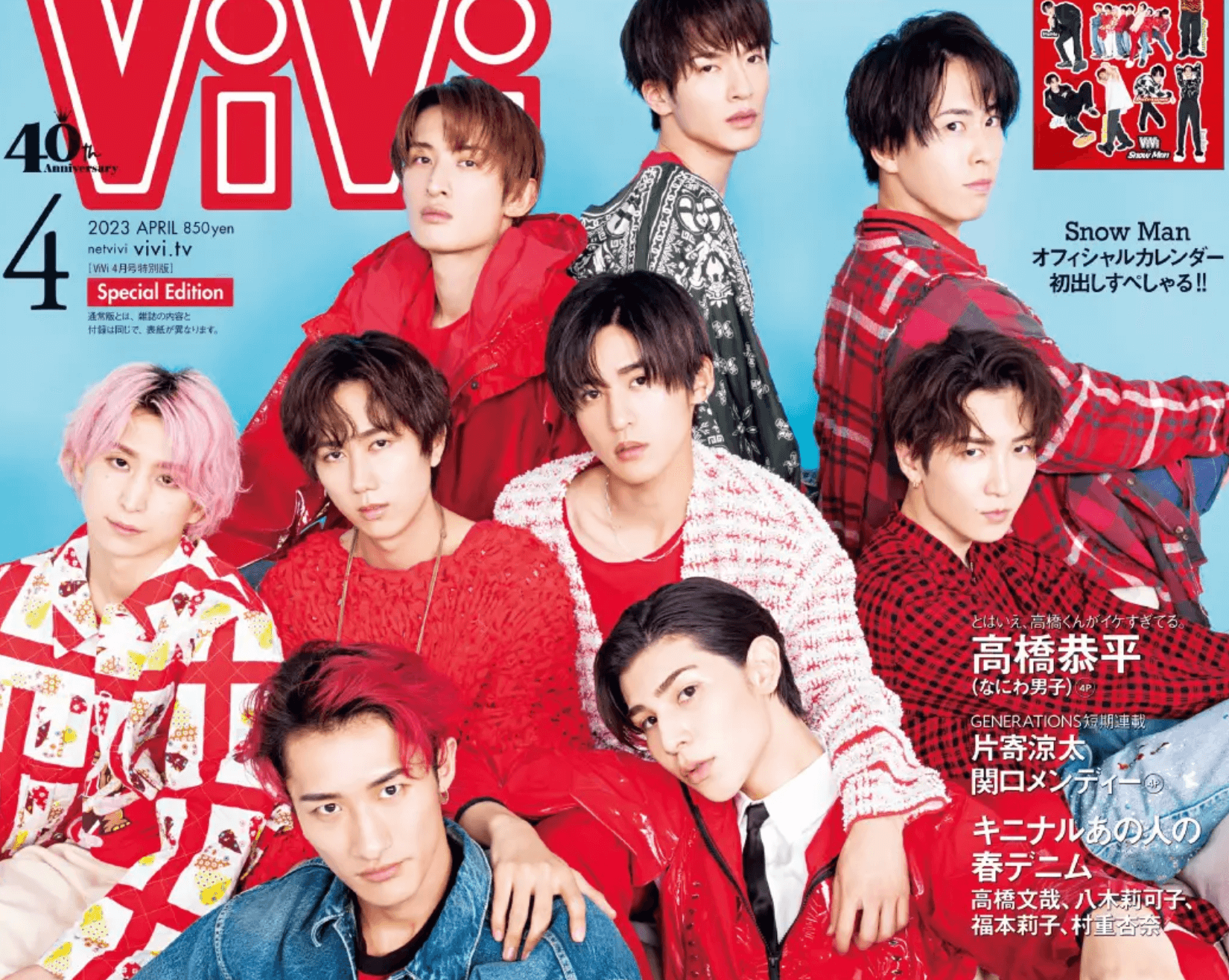 Snow ManがViVi4月号特別版表紙に登場!!ド直球の愛を詰め込んだ12P&スペシャルステッカーは永久保存版です♡高橋恭平(なにわ男子)の眼福ビジュアルも!